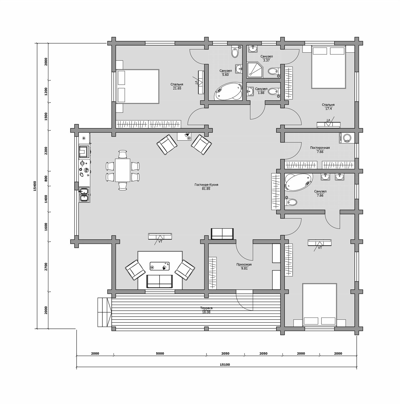 Большой одноэтажный дом со вторым светом - классика загородного дома с картинки... которая может стать реальностью! Если вы любите принимать гостей и устраивать масштабные посиделки, этот дом для вас: кухня-гостиная площадью более 80 кв.м - это, конечно, находка! В доме три спальни и четыре санузла для максимального комфорта всех домочадцев и гостей. Панорамные окна наполнят дом светом и красками природы, а клееный брус позаботится о наилучшем качестве жизни для каждого обитателя!