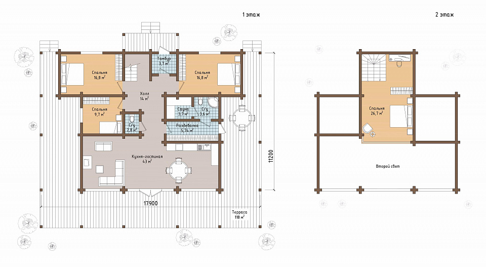 Деревянный дом Церматт - это воплощение современного стиля лофт с обилием света и светлого дерева. В этом доме вы сможете наслаждаться свежим воздухом и видом на природу с двух больших террас и двух балконов. Просторная кухня-гостиная и 4 спальни, расположенные на первом и мансардном этажах, обеспечивают комфортное проживание всей семьи. Кроме того, дом оснащен 3 санузлами, сауной и просторным холлом для вашего удобства.